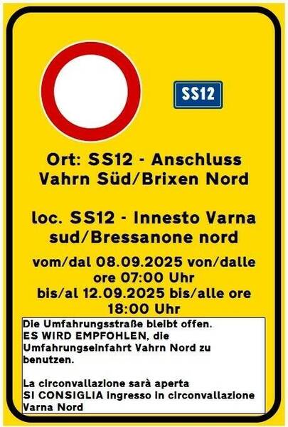 A seguito di colloqui intercorsi con gli uffici provinciali competenti e la ditta esecutrice dei lavori, il Comune di Bressanone comunica il seguente aggiornamento