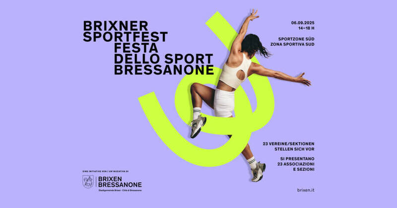 Sabato 6 settembre 2025, dalle ore 14 alle 18, la Città di Bressanone e ben 23 associazioni sportive invitano la popolazione alla seconda edizione della Festa dello Sport