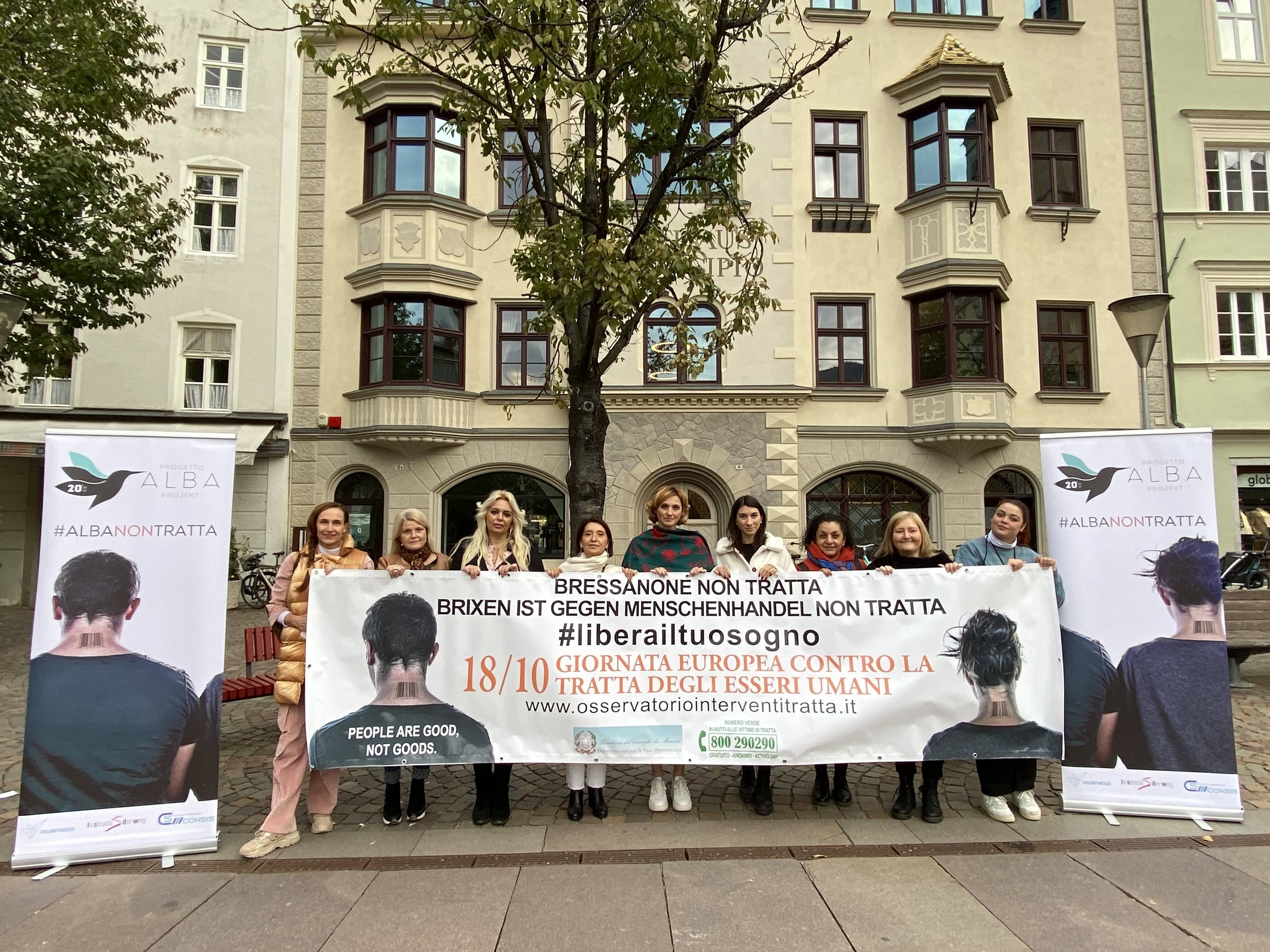 Il 18 ottobre, per la prima volta in contemporanea, il Progetto Alba è stato presente in piazza a Bolzano, Merano e Bressanone anticipando così tre distinti workshop informativi dal titolo “Numeri, esperienze, testimonianze scenari e prospettive nel contrasto alla tratta in Alto Adige”. Gli eventi sono incentrati sull’analisi dell’evoluzione di questo fenomeno in Alto Adige.