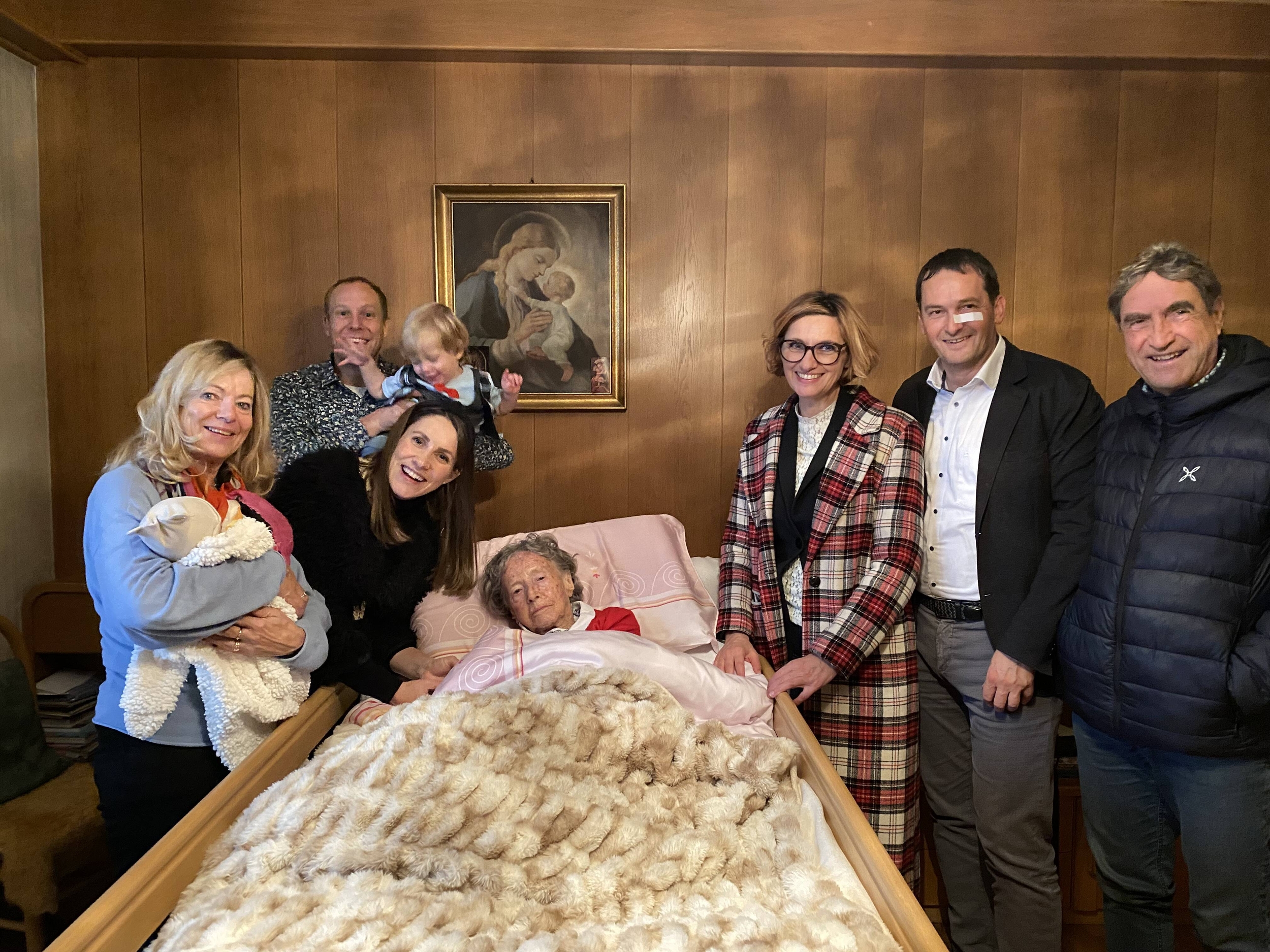 Contenta della visita, la signora Winkler Spitaler ha accolto gli auguri e un mazzo di fiori come regalo dell'amministrazione comunale in compagnia dei suoi familiari.