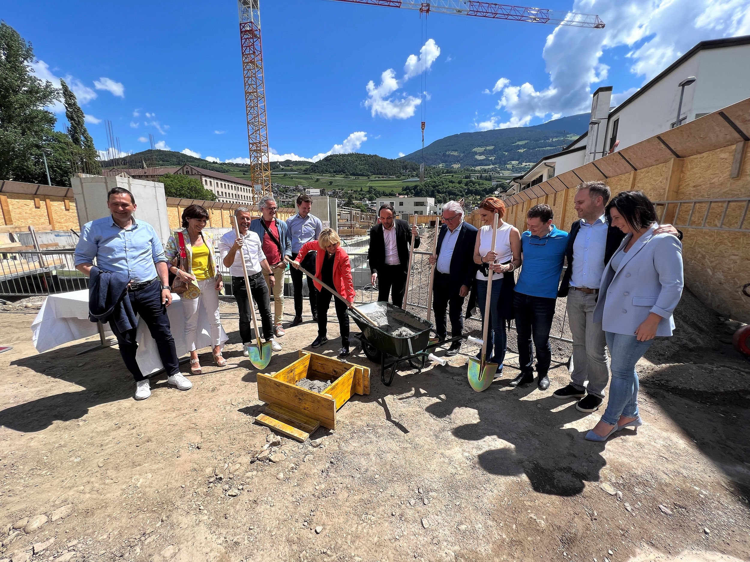 Il sindaco Peter Brunner, insieme all'assessore comunale competente Monika Leitner; alla consigliera provinciale Waltraud Deeg e al consigliere provinciale Phillip Achammer, ha posato oggi la prima pietra per la costruzione della scuola materna e asilo nido a Rosslauf.