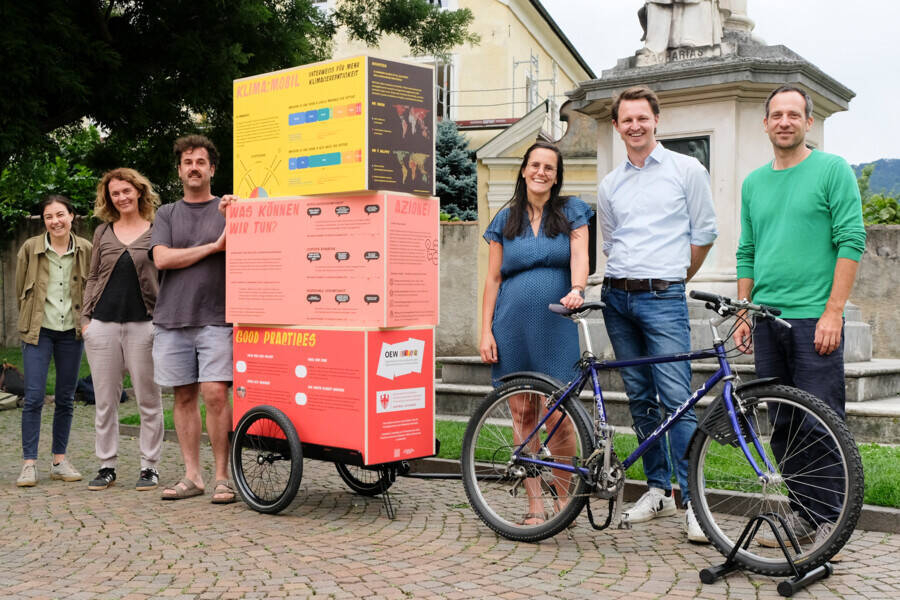 Cuore della campagna è il Klima:Mobil: una mostra itinerante bilingue allestita su un rimorchio per bicicletta, che farà tappa nelle piazze di città e paesi. Sul posto, i*le passanti sono invitati a confrontarsi in modo chiaro e interattivo con le cause e gli effetti della crisi climatica – sia su scala globale sia in relazione alle sfide concrete che affrontiamo in Alto Adige. Allo stesso tempo, la mostra stimola una riflessione sui possibili percorsi di soluzione e invita a scoprire i propri spazi d’azione.
