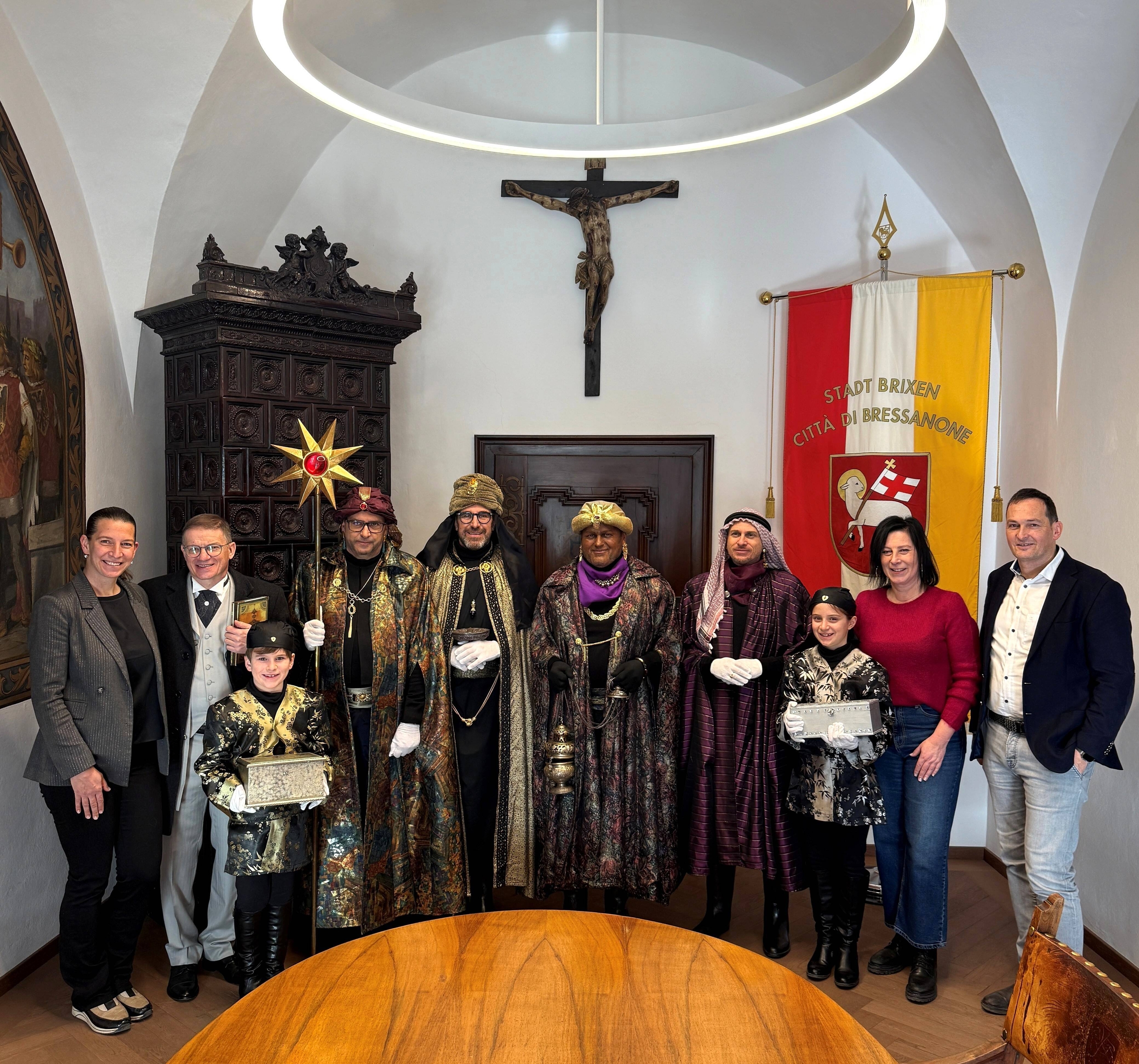 Tradizioni e senso di comunità hanno caratterizzato gli ultimi giorni dell’anno in Municipio. Il sindaco Andreas Jungmann e la giunta comunale hanno accolto per il tradizionale augurio di inizio anno i cantori della stella, la Banda musicale di Bressanone e i cantori dell’associazione MGV.